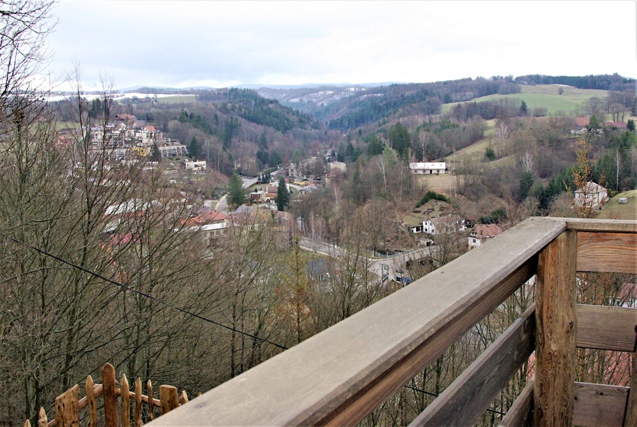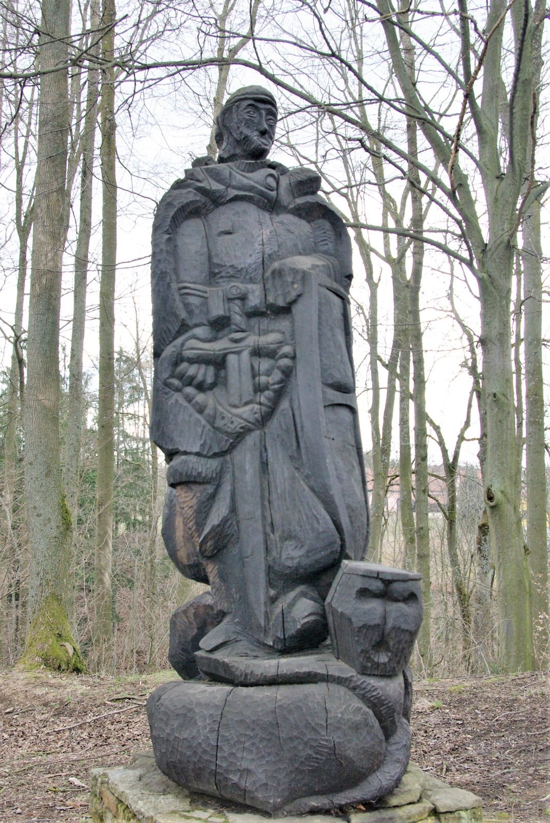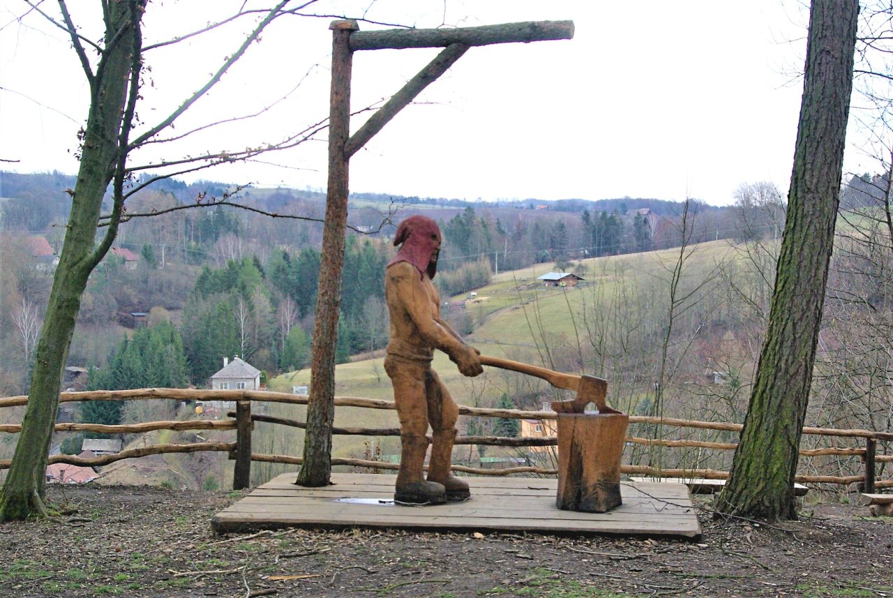 Dřevěná strážní věž ve Skuhrově nad Bělou připomíná zaniklý středověký hrad. Hlídá ji kat a zbrojnoš