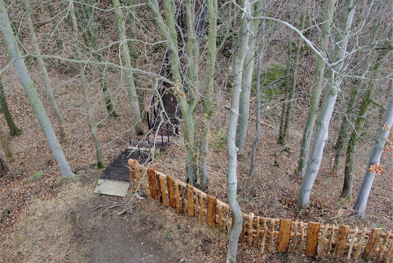 Bývalé hradní návrší, asi půl kilometru východně od Skuhrova nad Bělou, se skuhrovští rozhodli v roce 2001 oživit a postavit tam věž, která by připomínala strážní význam bývalého hradu. Základy vykopala mládež při prázdninové brigádě a už na konci listopadu téhož roku mohli na věž vystoupat první návštěvníci. Byla první rozhlednou, která okopírovala vůbec nejžádanější dřevěný rozhlednový model - typ "Modrá", která stojí nedaleko Uherského Hradiště.