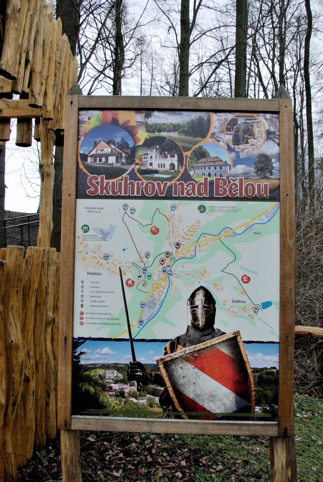 Dřevěná strážní věž ve Skuhrově nad Bělou v podhůří Orlických hor slouží jako rozhledna. Stojí na strmé vyvýšenině nad kouzelným údolím řeky Bělé. Připomíná někdejší strážní hrad postavený v roce 1282. Z něj se dochovaly jenom terénní vlny a dva hluboké příkopy. Romantické místo chrání stylizovaný dřevěný padací most, zbrojnoš, kat a také Mutina Skuhrovský, údajný zakladatel hradu.