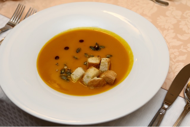 6. Jakmile je dýně měkká, rozmixujeme ji a necháme na chvíli polévku vychladnout.