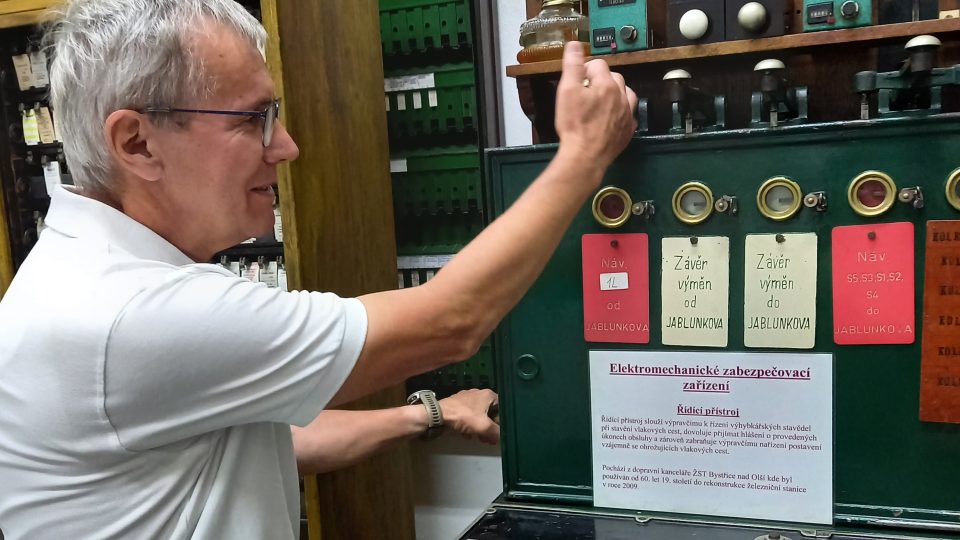 Uvidíte, čím byla zařízena a vybavena a co všechno výpravčí při provozu trati ovládal a musel znát. Josef Juřeník je s železnicí spjatý celý život a dnes je součástí muzejního týmu a stará se o provoz. A taky velmi poutavě umí o expozici vyprávět. Poslechněte si.