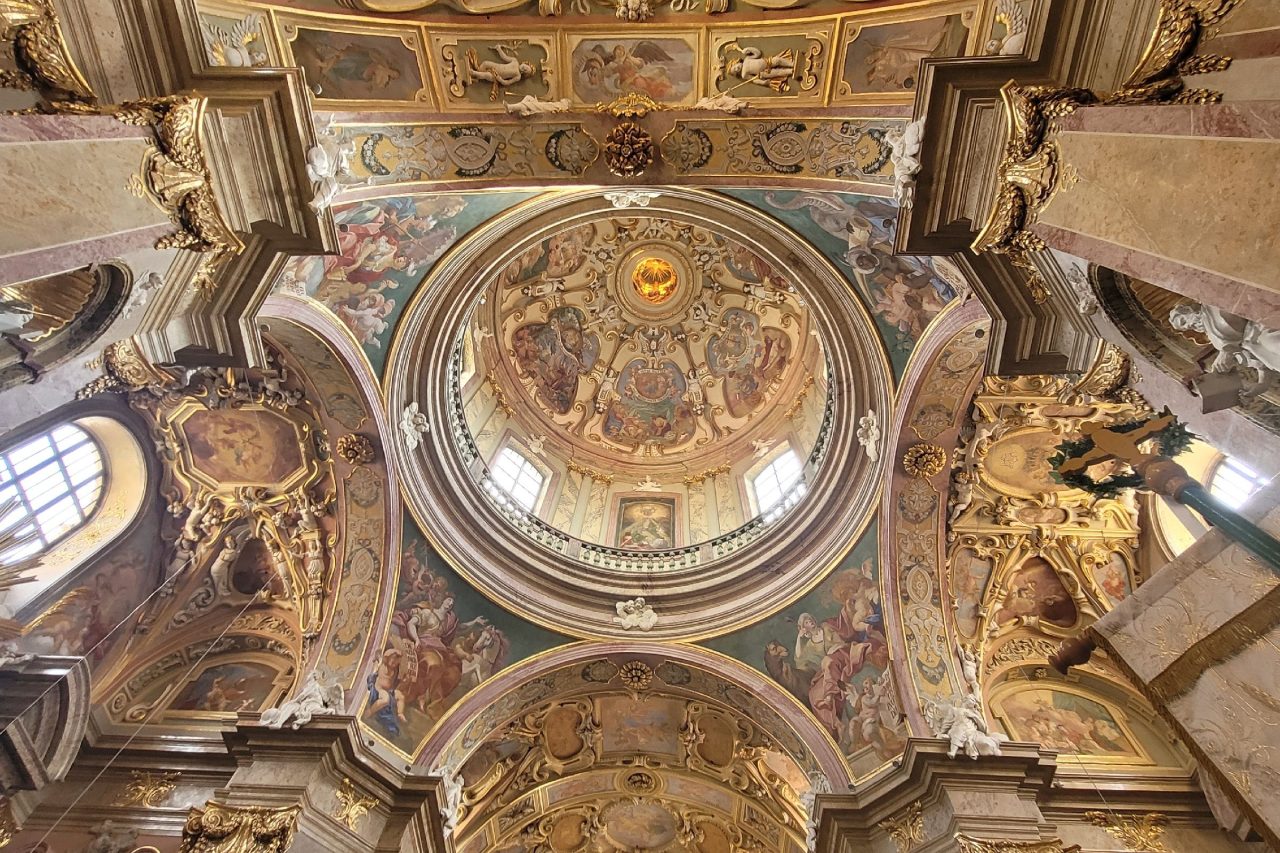 Svatokopeckou baziliku zdobí štuková výzdoba, která místy dosahuje až třiceti centimetrové hloubky. Fresky na stropě představují mariánské motivy především z litanií loretánských. Velkou vzácností je bohaté využití umělého mramoru. „Jde o mimořádné dílo, které vytvářeli v 17. století umělci přímo na místě,“ zdůrazňuje farář.
