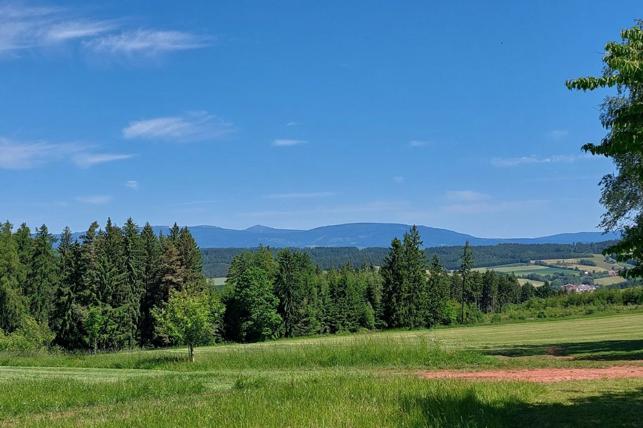 Krkonošské vyhlídce nad Arnoštovem vévodí vyhlídkový posed. Uvidíte z něj Ještěd i Sněžku