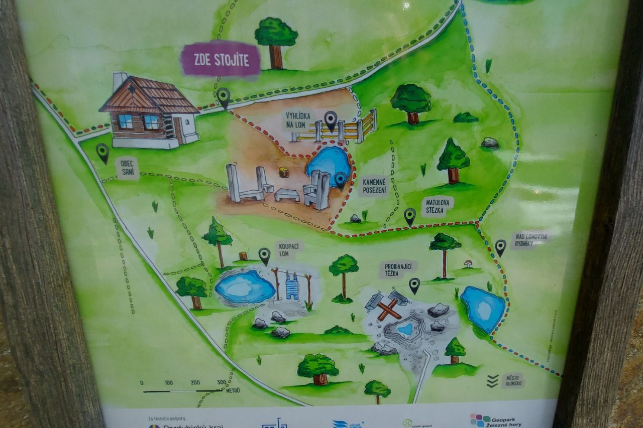 Na břehu lomu je možné usednout na kamenné židle se stolkem. Několik informačních tabulí vám představí nejen místní geologii, horniny a minerály, ale také připomene nelehkou práci zdejších kameníků. Infopanely totiž nabízejí historické černobílé fotografie lomařského vybavení i samotných dělníků, kteří v lomu kdysi pracovali. Po Matulově stezce můžete pokračovat dál směrem k obci Holetín a napojit se na další turistické trasy okolo Hlinska.