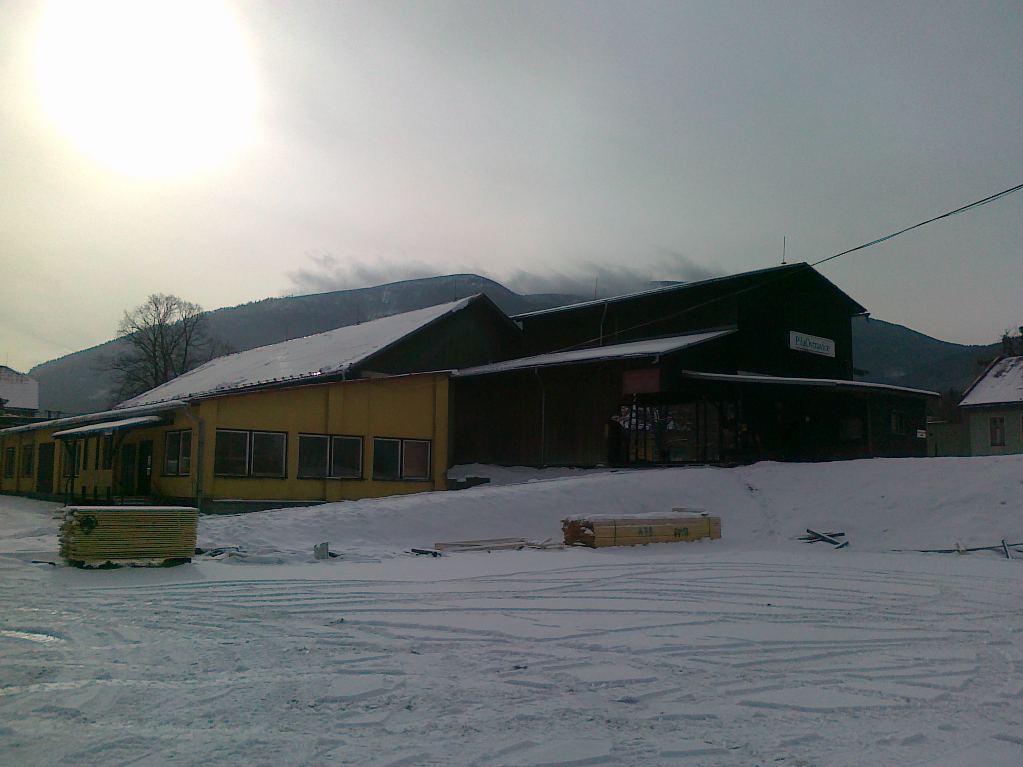 Rodinná pila v Pržně u Frýdlantu nad Ostravicí. Vůně řezaného dřeva je tu cítit už déle než sto let. Teprve nedávno ale musela propustit všech svých 15 stálých zaměstnanců. Ostatní pracují jen dva dny v týdnu.