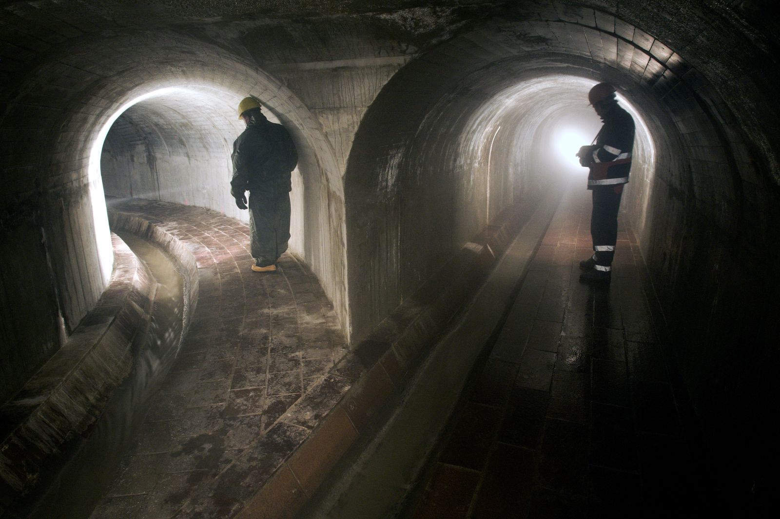 Splaškové vody je tady pod kolena. Tento sběrač v Ostravě-Nové Vsi je dokonce obložený kachlemi. „Jsou také sběrače z potrubí, kde se kontrolují spoje, prostě technický stav,“ říká Petr Šimkovič.