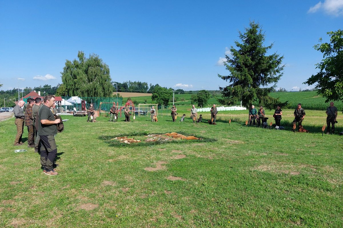 Při lesních zkouškách ohaři simulují vyhledávání i přinášení zvěře. Splnění jim zajistí využití v chovu i myslivosti