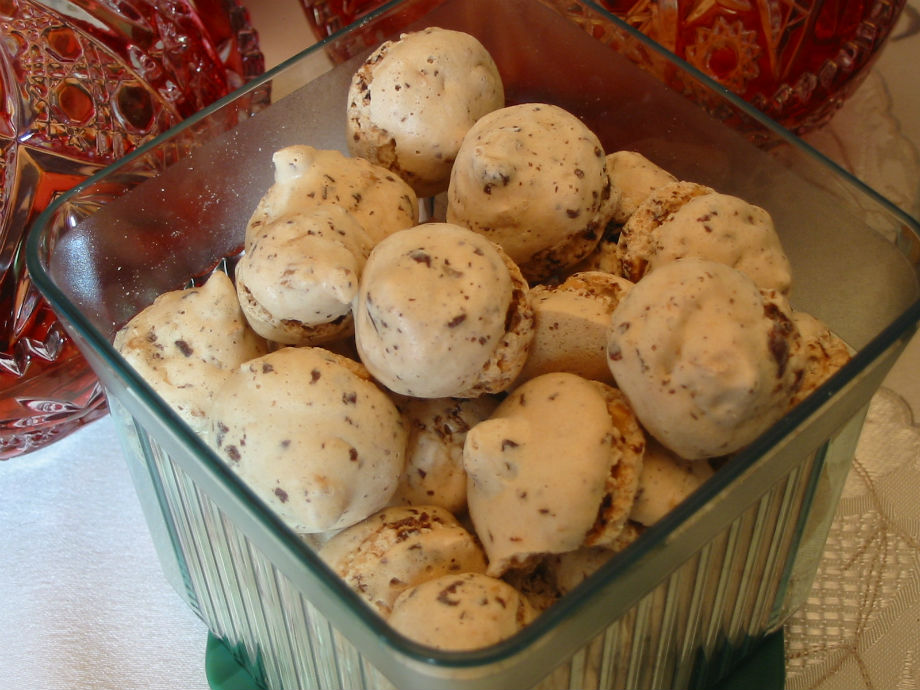 Z bílků ušleháme sníh, přidáme cukr a ořechy a vše zamícháme (i s rohlíky).