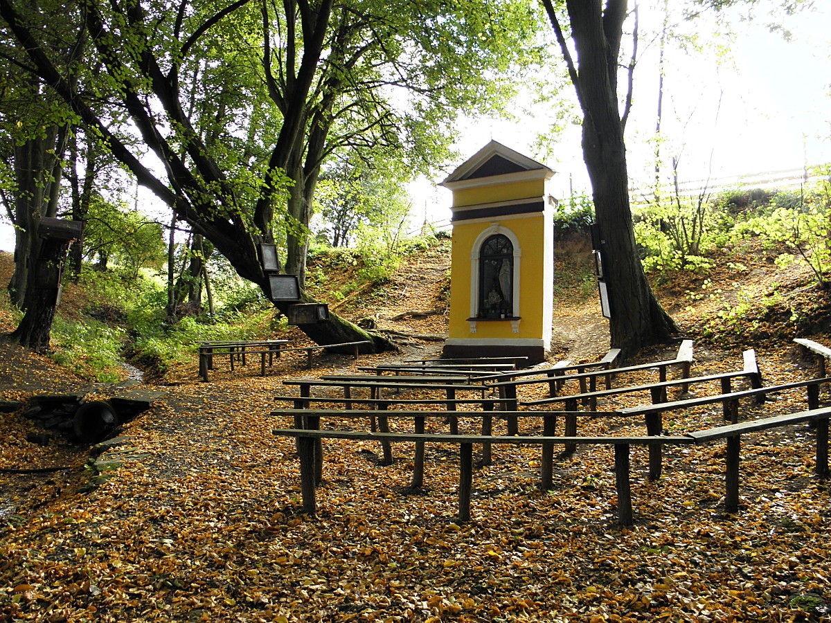 Dnes je v kapličce u Svaté vody socha Panny Marie a kopie Pražského Jezulátka. U studánky nechybí erární hrnek, takže se můžete klidně napít. A když už se osvěžíte, můžete si kolem pramene prohlédnout zajímavou galerii ve volné přírodě.