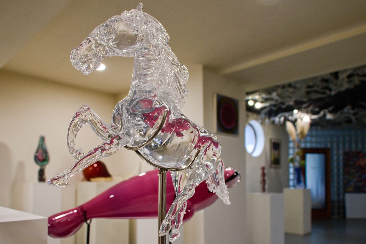 Muzeum představuje návštěvníkům velkou sbírku moderního skla, užitého i výtvarného umění od umělců domácích i zahraničních. „Ve dvou patrech se dá vidět, co všechno lze ze skla udělat. A zároveň mohou návštěvníci z ochozu muzea přímo nad sklárnou sledovat výrobu,“ říká Viktor Novotný, spolumajitel firmy Novotný Glass. „Máme tu díla snad ze všech kontinentů, z celého světa. A vždycky je na tom skle a na té tvorbě vidět, odkud který umělec je,“ upřesňuje Novotný. Ze zahraničních umělců jmenujme alespoň Dalea Chihulyho, Jamese Mongraina, Michaela Behrense nebo bratry De la Torre brothers.