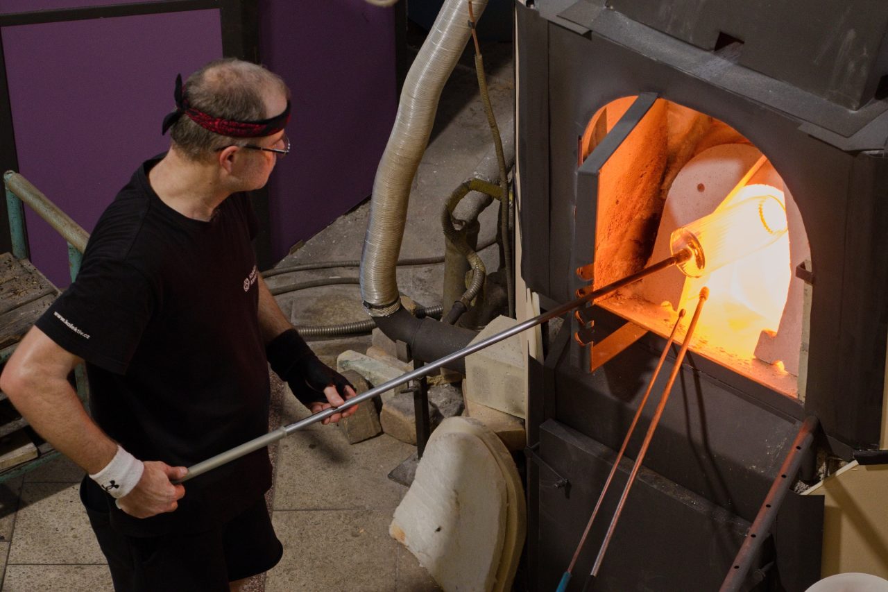 Od expozice Petra Novotného je to jenom krok na muzejní ochoz, odkud mohou návštěvníci sledovat práci u čtyř sklářských pecí. „To je unikátní pohled, který u nás můžete vidět každý den včetně svátků a nedělí, pokaždé do 15 hodin. Zavřeno bývá opravdu jen výjimečně. Tato dnes už poměrně vzácná činnost byla nedávno zapsaná na seznam nehmotného kulturního dědictví UNESCO,“ dodává k práci sklářů Viktor Novotný.