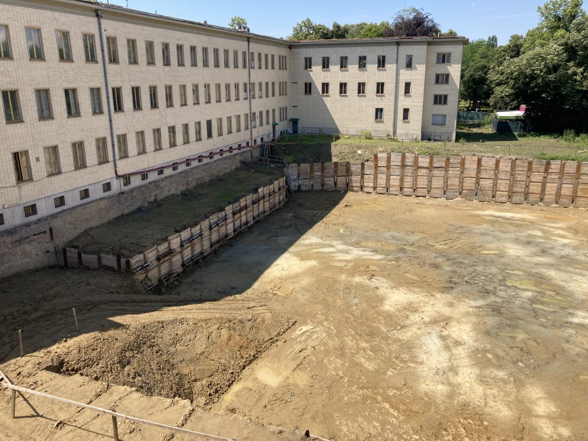 „Je to první počin tohoto druhu v České republice. Tvar už sám o sobě evokuje, co to bude znamenat z hlediska konstrukce a potom uvnitř má vyrůst sál se špičkovou akustikou,“ říká hlavní statik stavby Ivan Němec nad devítimetrovou jámou, ve které začnou brzy budovat základy monumentální přístavby k 70 let starému kulturnímu domu.
